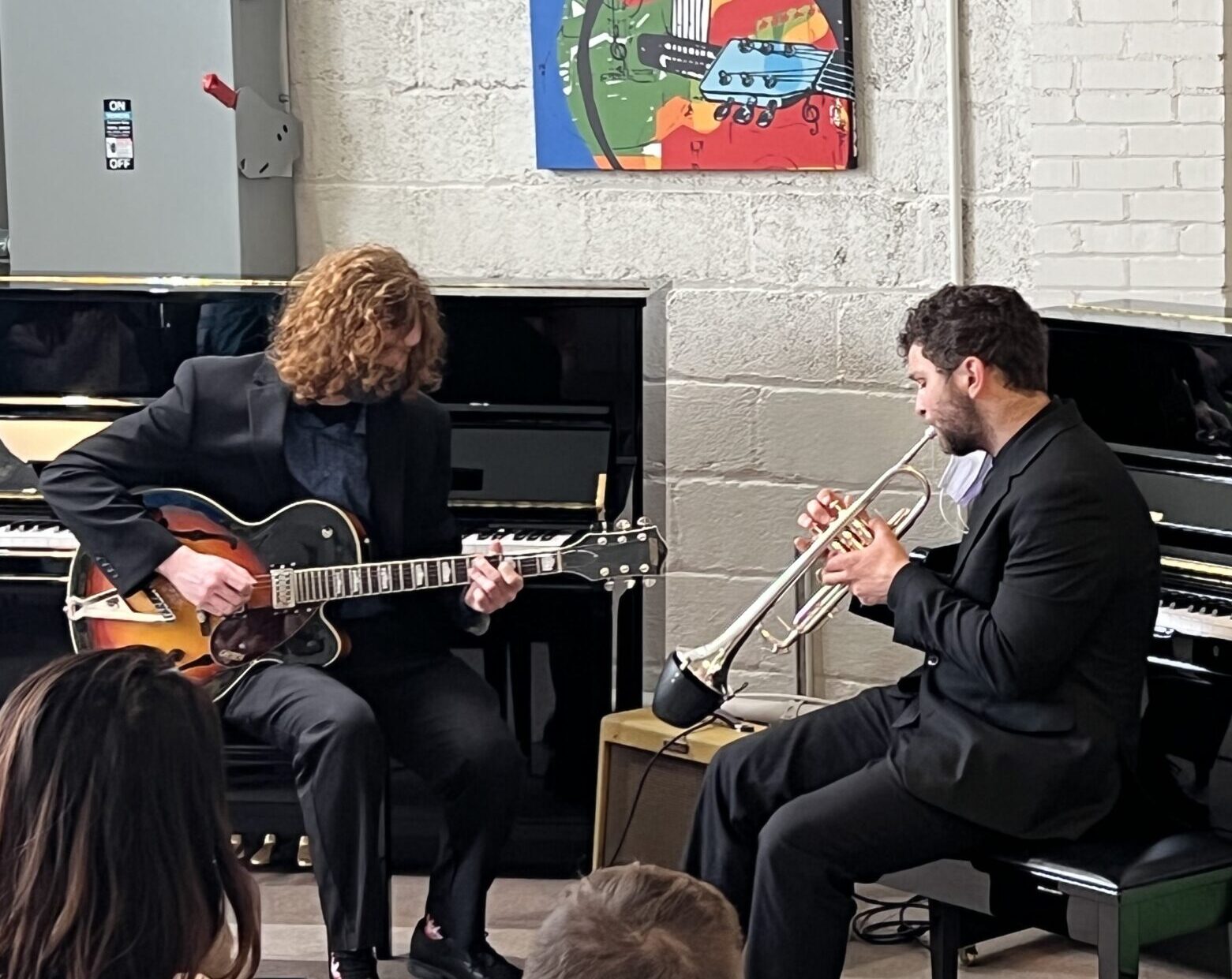 After the musical extravaganza, a Q&A Session was held discussing practice tips, jazz venues, performance anxiety, memorable performances, and what a day in the life of a music major is. Questions from the audience were asked to the Duquesne student panel and every performer was able to speak about their own experience as a Duquesne music student. Slightly different perspectives were given throughout the Q&A because the Duquesne students varied from Music Education Majors, Music Performance Majors, Music Technology Majors, and Music Therapy Majors. Kyle Chauvette, one of the Duquesne performers, stated, “Collaborating with these young students gave me a true glimpse into what being a private teacher consists of. It is more than lesson planning and curriculum building, but socializing with parents, teaching ensemble skills, and more.” My students, Laura and Adrian, stated, “The guitar and saxophone were our favorites! I did not know they could be so loud!”