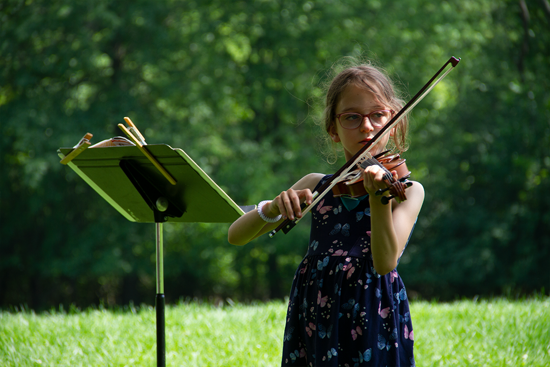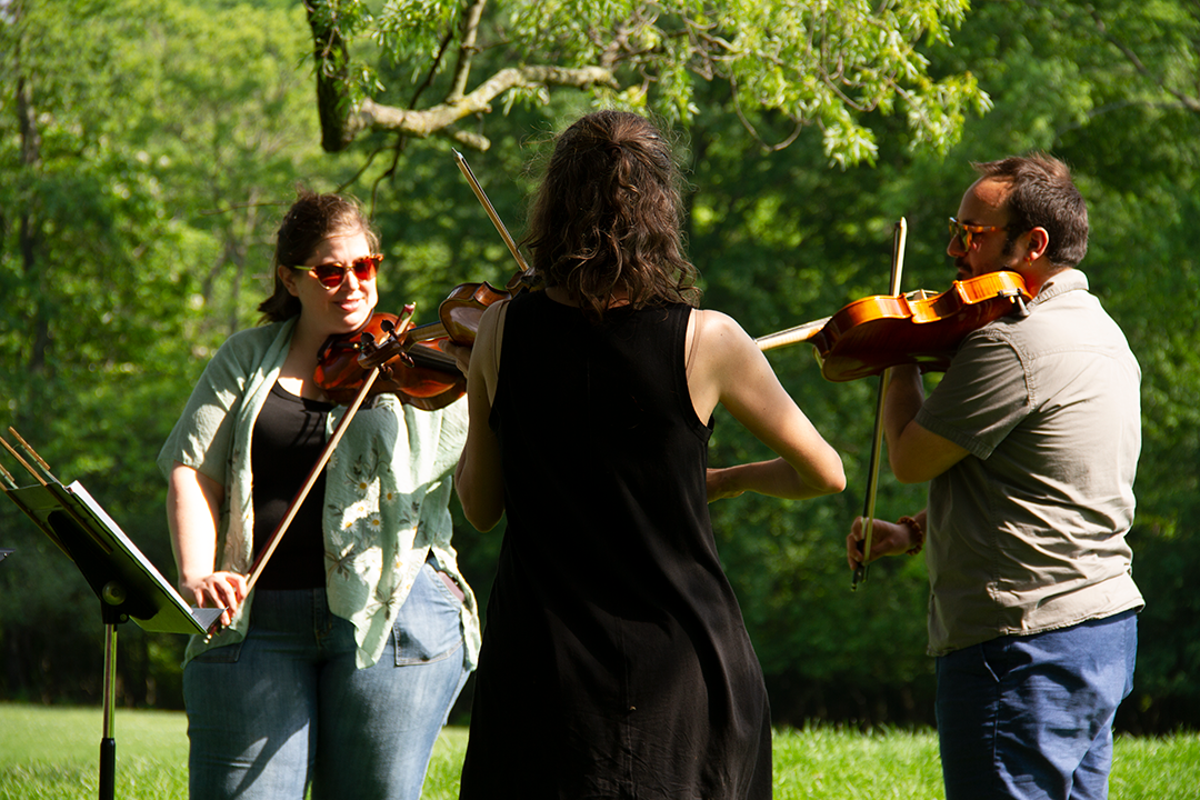 Thank you to everyone who came out to enjoy a lovely day of sun and music this past Saturday in Frick Park. About 25 students performed for friends, families, peers, and even some curious park guests who decided to stop and listen. While tuning was a little difficult because of the warm weather, Mr. Chris, Ms. Leah, and Ms. Rochelle were able to help students find their pitch. The students and teachers set up in the shade of a large tree right off the main walking path. While the majority of the performers were violinists, there were cellists and guitarists there as well.