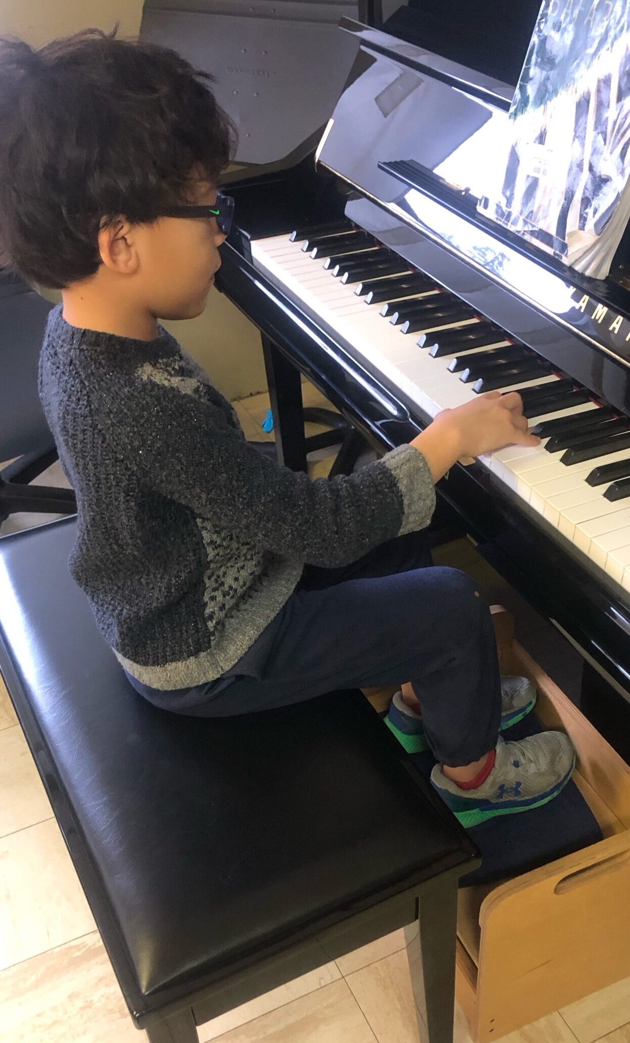From the very beginning of your piano training, building healthy habits means doing the right things – yet it also means not doing the wrong things! Using a piano cushion and footstool provides several benefits to young or small statured students; not using these tools can create trouble that sneaks up and accumulates over time. When a student is physically well balanced at the piano, they become more skilled and music enjoyment increases: longer daily practices and a favorable outlook about upcoming lessons can also result. When a student is set up well, they tire less quickly and avoid developing poor habits. Listeners viewing a student who is truly comfortable, will enjoy the music without becoming distracted.